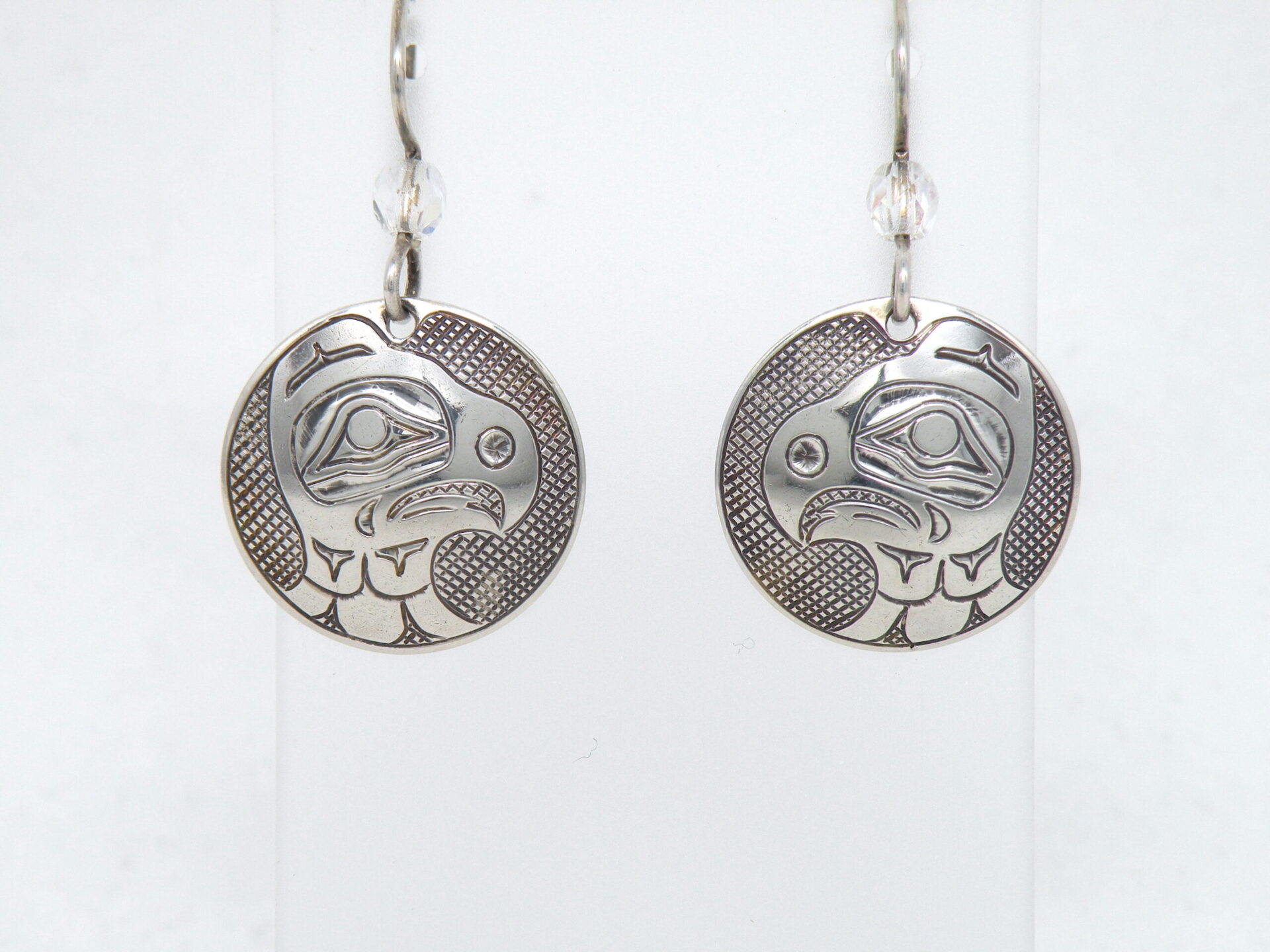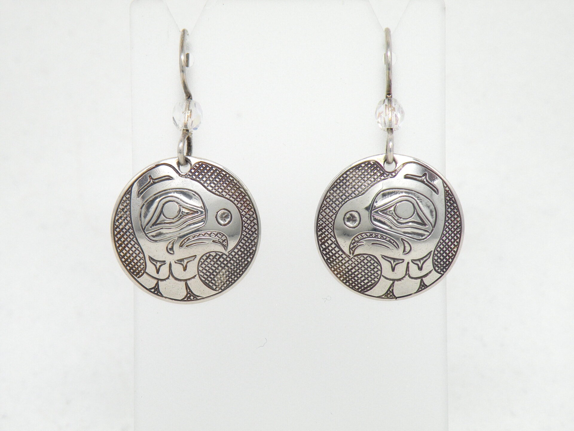 These Jenny Lyn Silver Eagle Earrings are 3/4″ in diameter. The Sterling Silver wire earrings have a sparkly crystal bead.