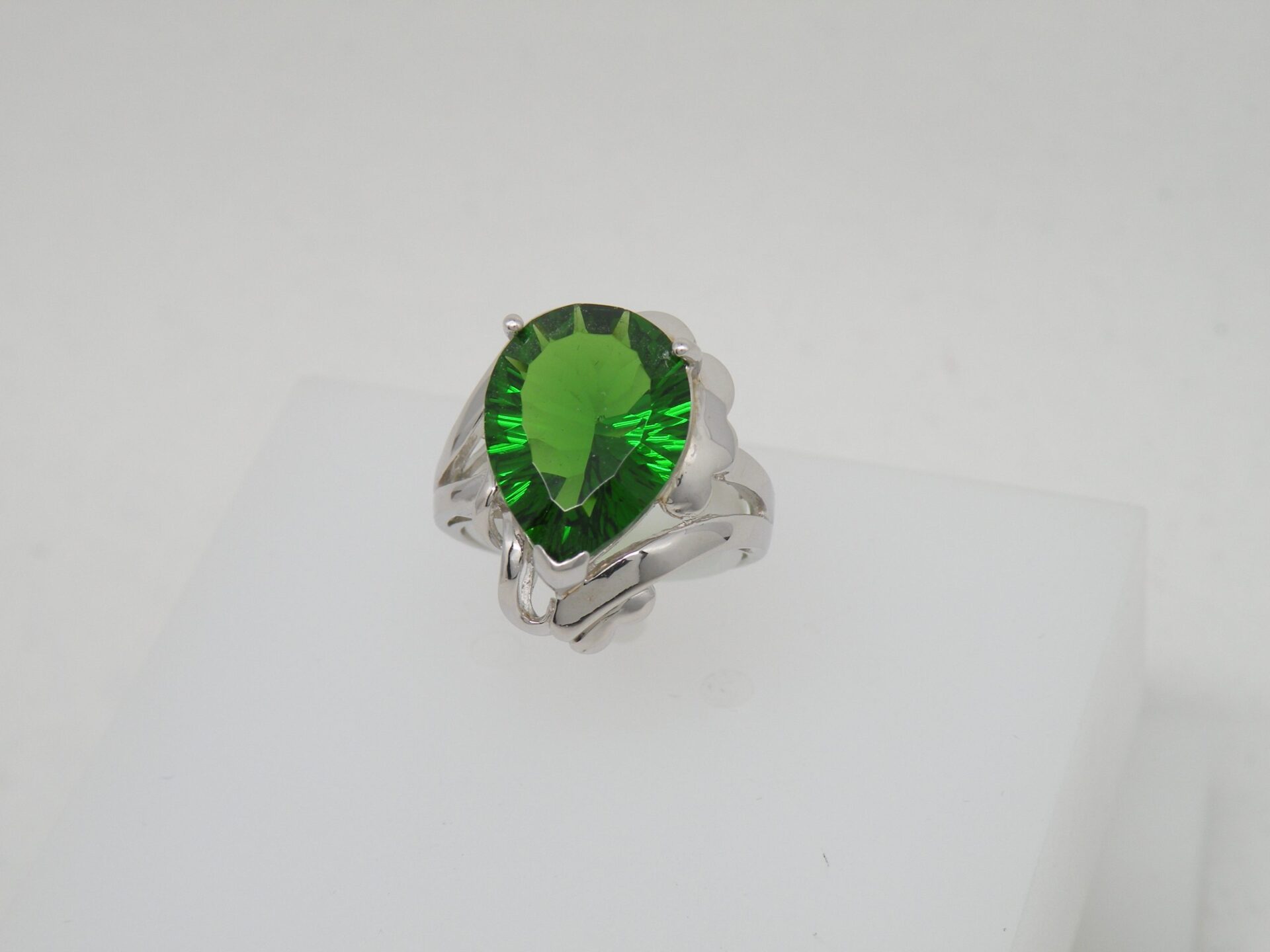 The Radiant cut Pear shaped stone is 13 x 18mm. This is nice big attractive stone, set in .925 Sterling Silver. Finger size 7